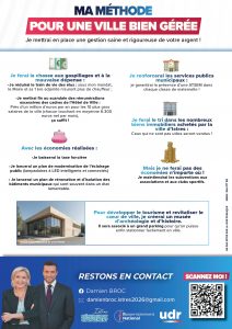 « Il est grand temps de reprendre en main la gestion des finances de la ville ! Comptez sur moi pour y remettre de l’ordre et flécher votre argent au bon endroit !»